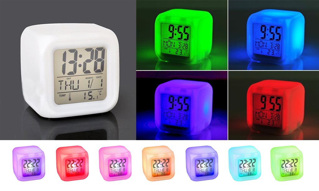 นาฬิกาปลุก ตั้งโต๊ะ LCD แสดงวัน วันที่และอุณหภูมิ พร้อมไฟ 7สี
